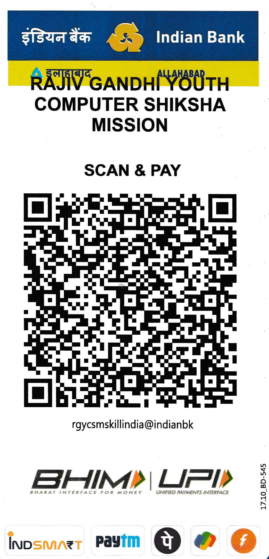| A/c Holder Name | RAJIV GANDHI YOUTH COMPUTER SHIKSHA MISSION |